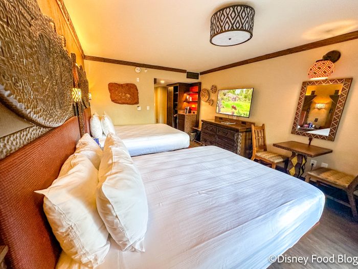 Not every Disney World hotel has a shower/tub combo, some are only a shower, which can be a problem for small kids who aren’t used to showers (Disney World is NOT the place to get them used to them, trust us), or for those who need to sit in a tub instead. We have room tours of different hotels up on our website, and you can also check Disney World’s website at any time for the most up-to-date photos and information!