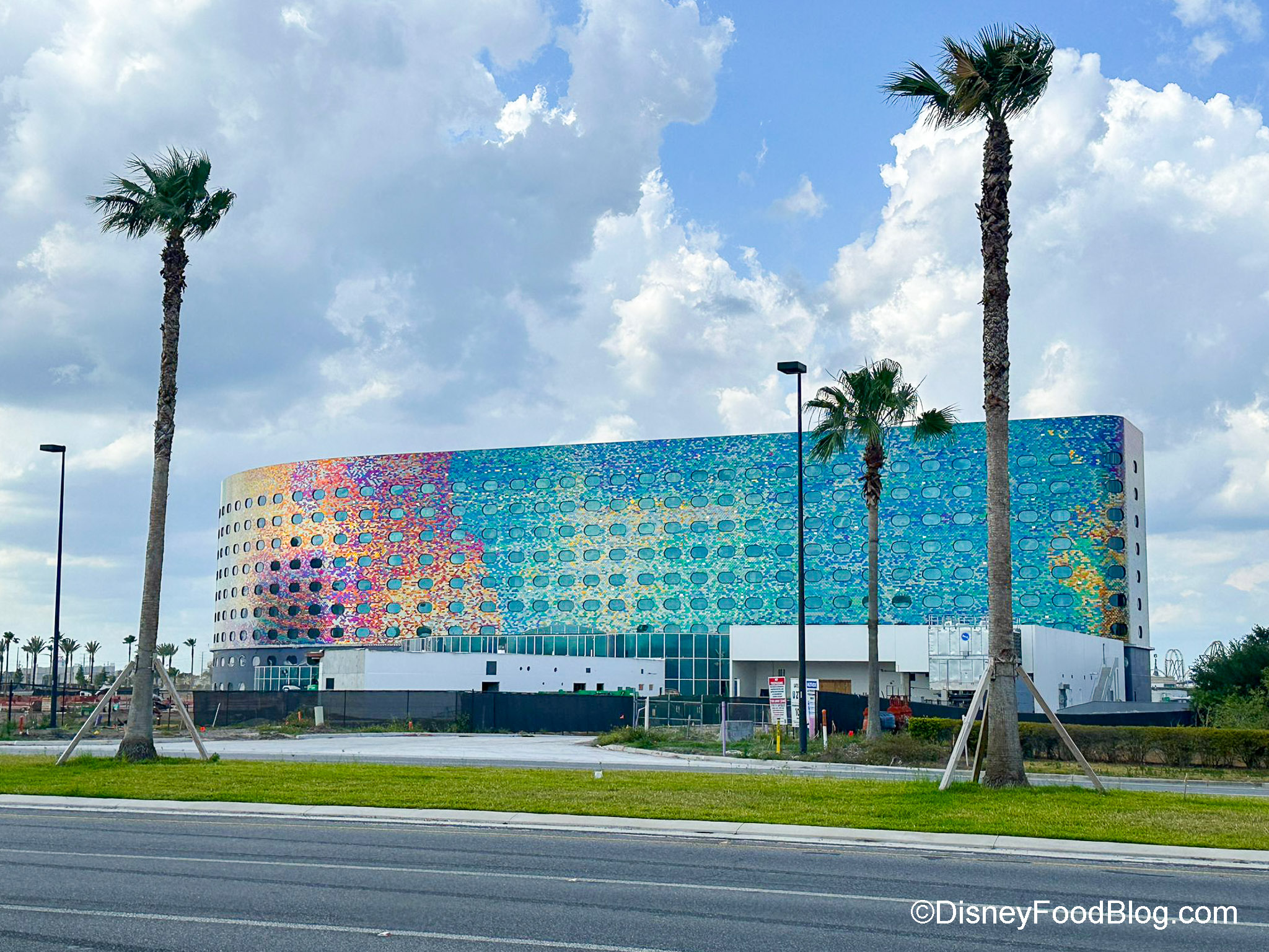 Granted, we can’t get TOO close to the construction, but we still saw progress on the hotels being built near Epic Universe. Universal Stella Nova Resort along with Universal Terra Luna Res0rt will “place guests in the center of marvelous galaxies and diverse planetary elements for an experience unlike anywhere else in the universe – complete with tranquil sleeping accommodations, entertaining amenities for the whole family to enjoy, various cosmic-inspired dining options and so much more.” Here’s the concept art: