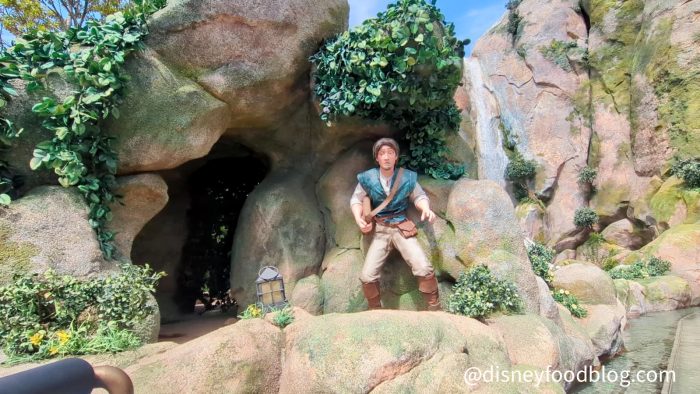 Now this ride starts with animatronics OUTSIDE. We see Flynn and Rapunzel meet here.