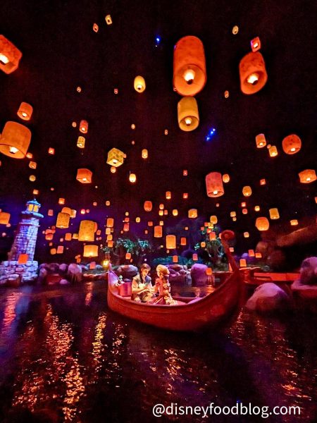 And then you’re on to the iconic scene we have all dreamed of living in — the Lantern Festival opens up before you. The WHOLE room is water — and you feel like you are sitting on a lake with Rapunzel and Flynn.