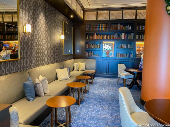 Seriously, though, the Voyageurs’ Lounge next door is a great place to visit before you head off to the Magic Kingdom for a busy day at the park. It’s dark, quiet, and packed with vintage Disney details we could admire all day.