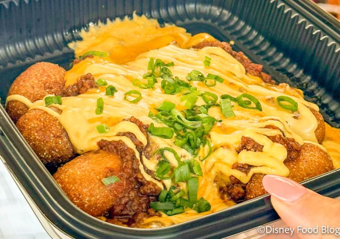 As soon as we bit into the first nugget, Hannah Montana’s song “The Best of Both Worlds” started playing in our heads. It really is the best of both worlds with the normal corn dog nuggets and Disney’s chili (which can be found at several different counter-service restaurants throughout the parks). If you like those two things, you’ll LOVE this.