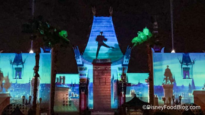 The same can’t be said for Disney Movie Magic, which usually runs before Wonderful World of Animation. The projection show has been running in some form or fashion since 2017 and features scenes from live-action Disney films projected across the theater’s facade.