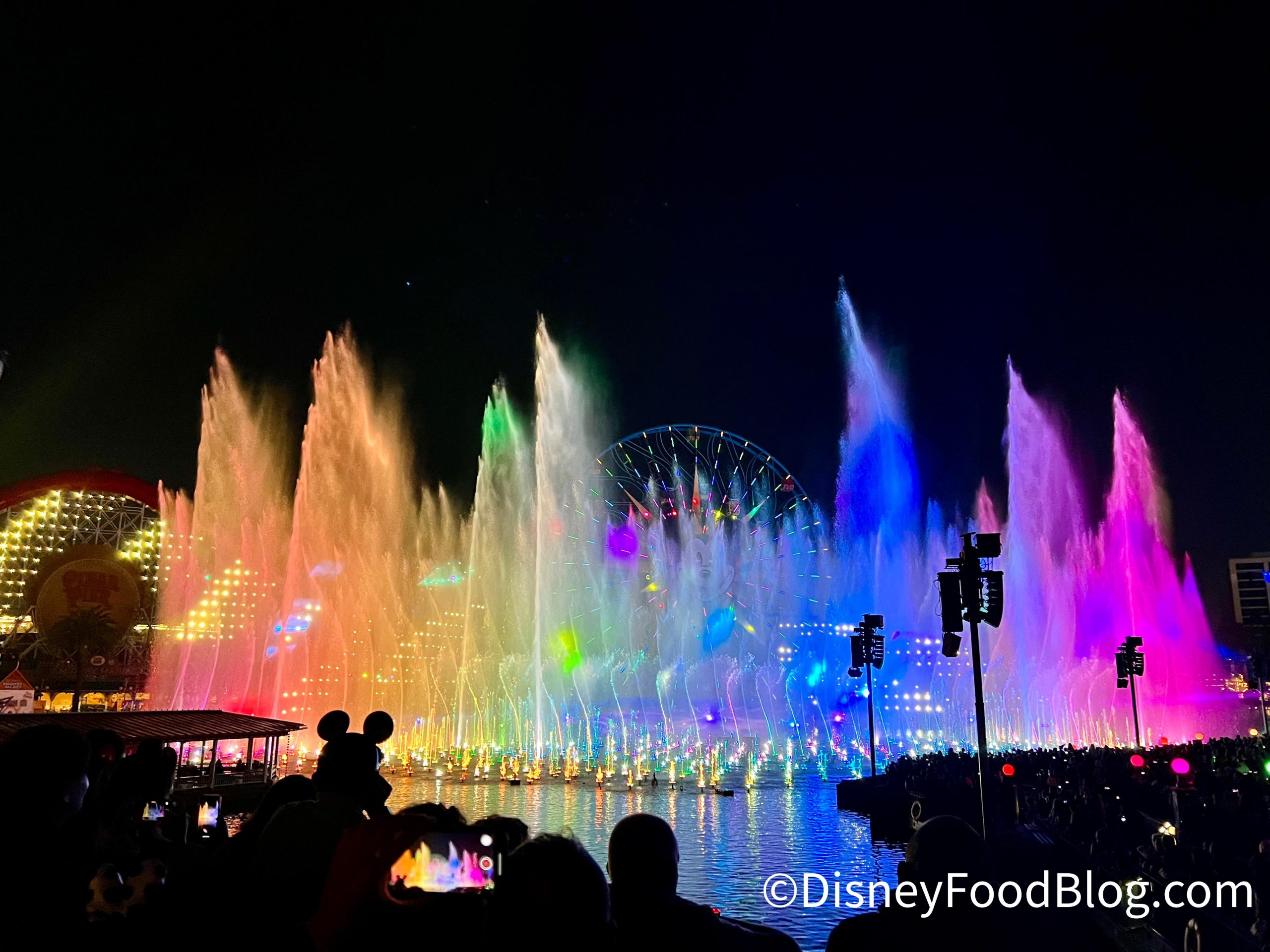 Keep in mind that getting a prime viewing spot for World of Color — ONE isn’t as easy as just staking out a spot — there are roped-off viewing areas for the show that can only be entered by getting a spot in the Virtual Queue that opens at 12PM PT (noon) each day. These areas are standing-room only and offer the best view of the show.