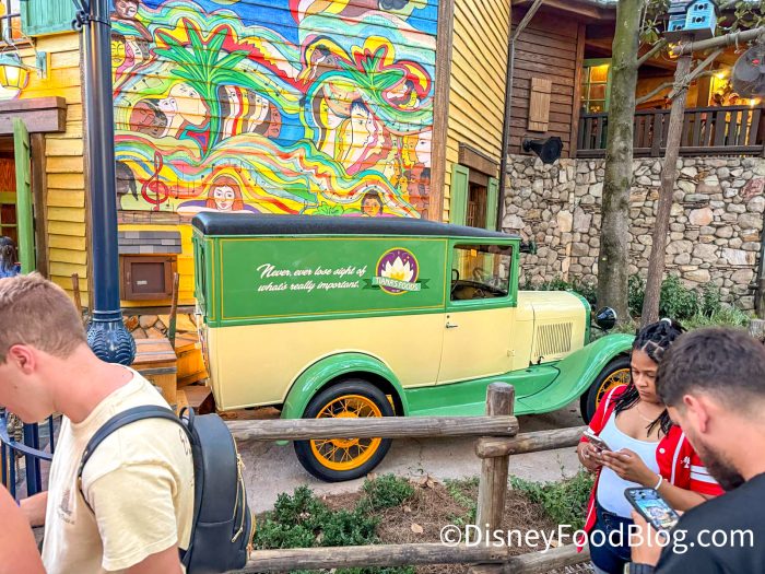 There’s also a whole CAR in front of the mural that belongs to Tiana’s Foods! The quote says “Never, ever lose sight of what’s really important.”