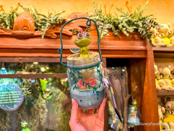 Of course, one of the most exciting parts of getting a new Disney World ride is all the new merchandise that shows up with it. We got to take a peek at all the merchandise that would soon make its way to Magic Kingdom, but one souvenir in particular caught our eye. We got to take a look at this new toy over at Critter Co-Op — one of the merchandise shops located near Tiana’s Bayou Adventure.