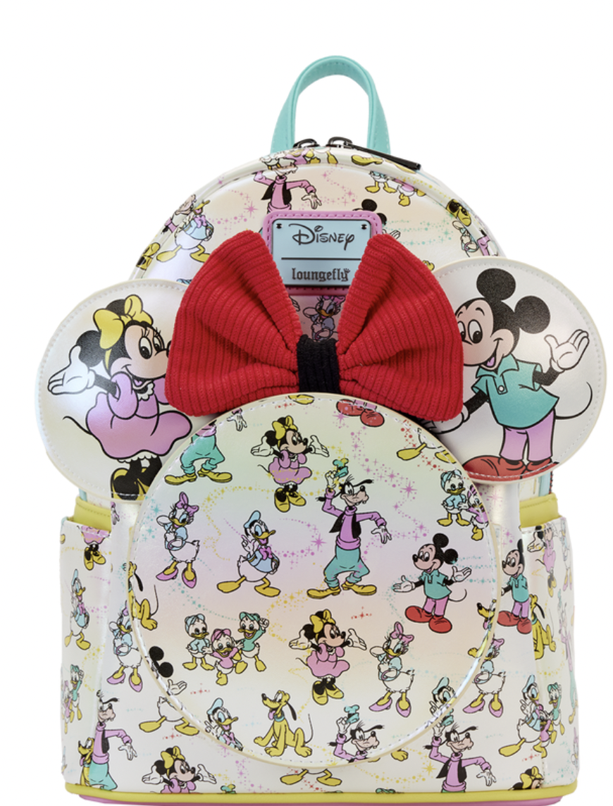 We love this iridescent Disney100 Mickey and Friends backpack! This bag gives us retro Magic Kingdom vibes. The best part? It also comes with ears! This is a two-for-one! And the backpack even has an ear holder pouch!