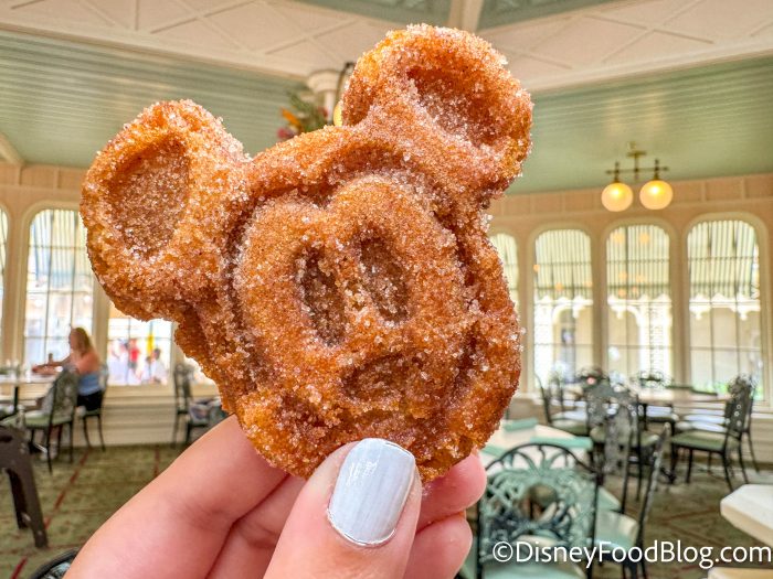 Another item I had to try was the churro Mickey waffle! This was spectacular with cinnamon sugar coating on the outside. It was soft in the middle and a little crispy on the edges, but still delicious even after it cooled off.