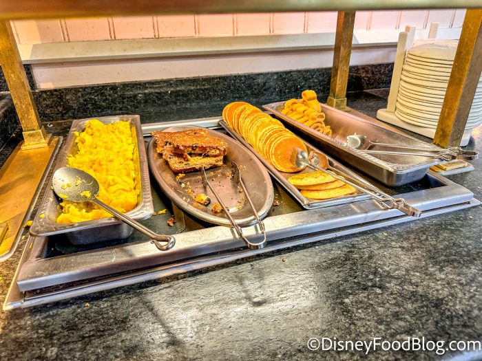 When you get around to the regular buffet, you’ll find classics like scrambled eggs, pancakes, and regular Mickey waffles.