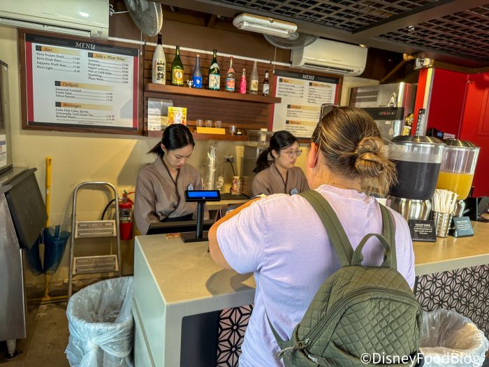The theming for the outside of the building is beautiful and blends with the incredible Japanese style of architecture and decor. When it’s open, the front doors are pulled aside revealing the ordering counter just inside.