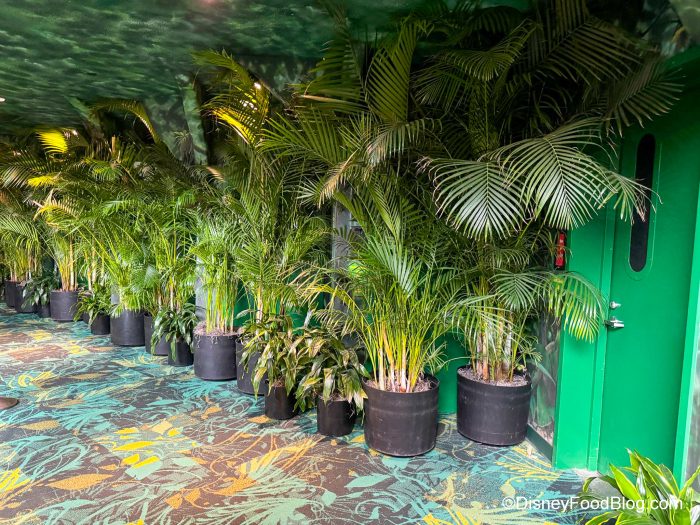 There’s also an abandoned attraction here. Grandmother Willow used to narrate a Song of the Rainforest sound show here. A Cast Member once told us that the show stopped operating after the building was struck by lightning (around 2011) and it fried the computer system, and the data was never backed up and was running on Windows 98, so there was no way to salvage it. It sits there, covered by ferns…