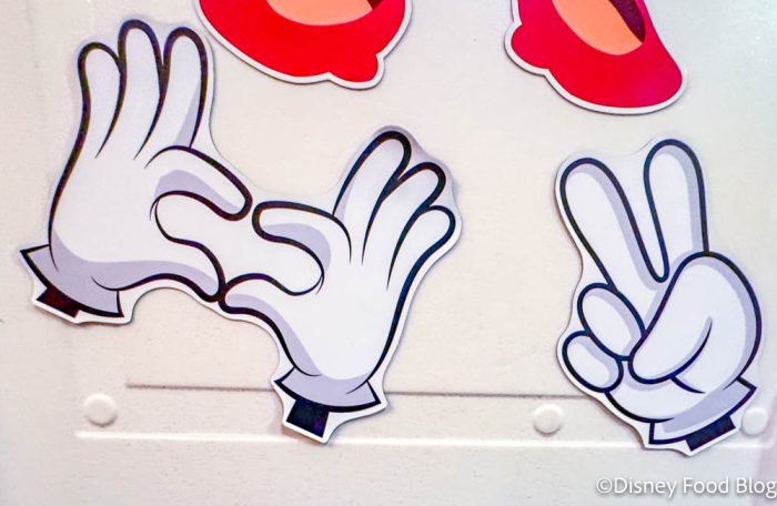 We grabbed these Mickey hand magnets as well! They come in a set of six magnets, and each has a different gesture. In the description of the magnets, it says you can write on them with an oil-based marker and then wipe it off with alcohol, so you could add your family’s names and the date of your trip, or any other messages you’d want to put on your door.