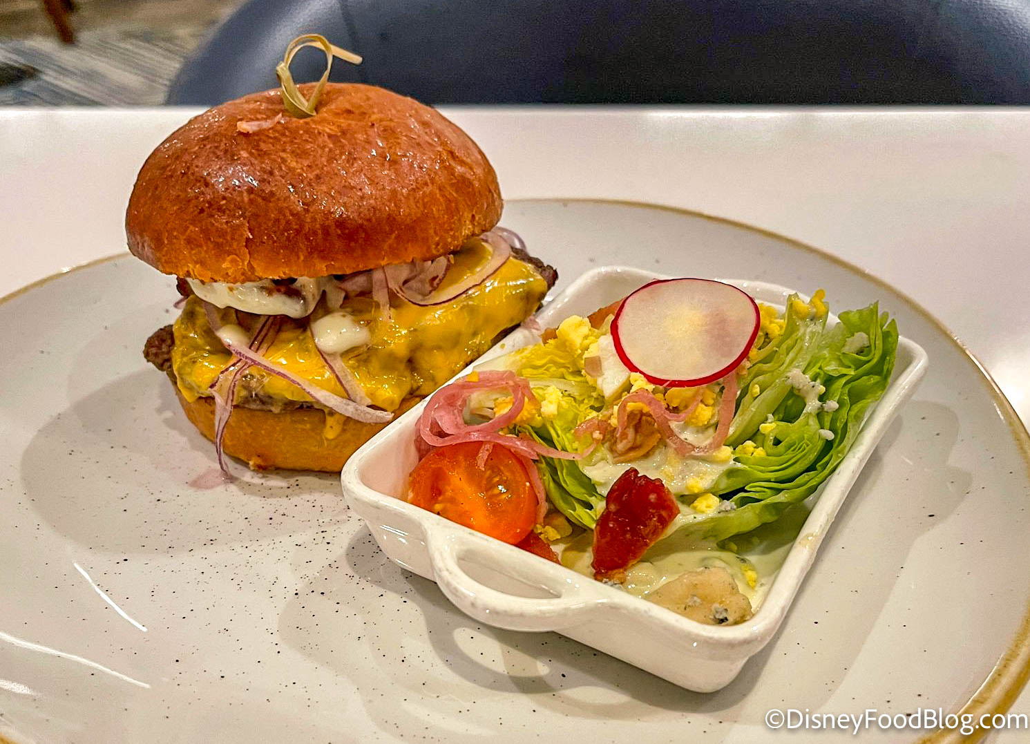 The name Topolino means Mickey Mouse in Italian, so this elegant dining experience still has a Disney flair! Topolino’s is a signature dining experience (we’re talking dress code, handmade pasta, and artisanal cheeses). Unless you’ve made a special trip to the Riviera Resort, you might not know much about this nighttime dining experience! And even if you have noticed it, you might have also noticed the price tag that comes with it. If you’re looking for an adult-friendly space that feels a little less “theme park” and a little more “elegant French/Italian dinner,” this is the place for you.
