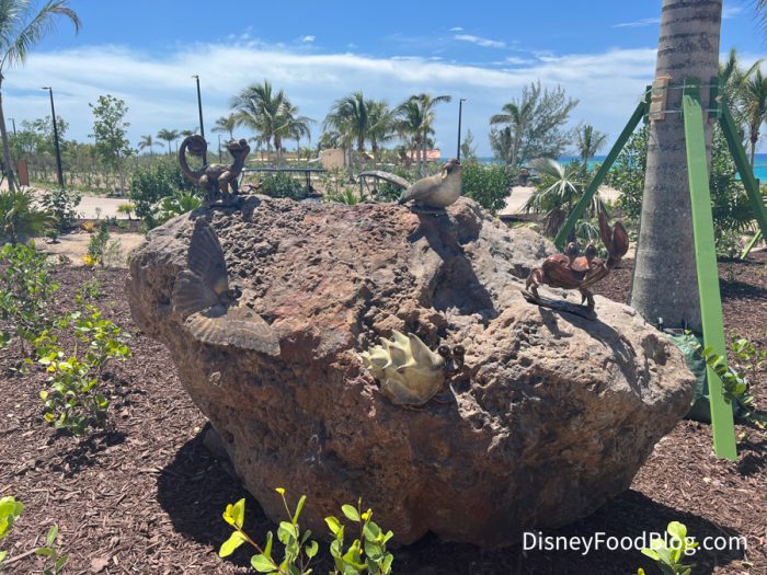 As mentioned before, you will get to hear Lizzie, a curly tail lizard, and Sandy, a crab, tell you all about the island! You can actually find little statues of the two of them with their friends once you arrive at Mabrika Cove.