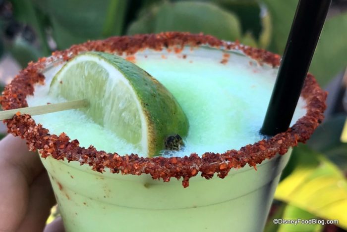 Starting out strong, we have the Lime Dole Whip Margarita, which can be found at Barefoot Pool Bar at Disney’s Polynesian Village Resort. It’s made with Corazón Blanco Tequila blended with DOLE Whip® Lime and Chili-Lime Seasoning — for those of you who drink alcohol, it’s a must-try!