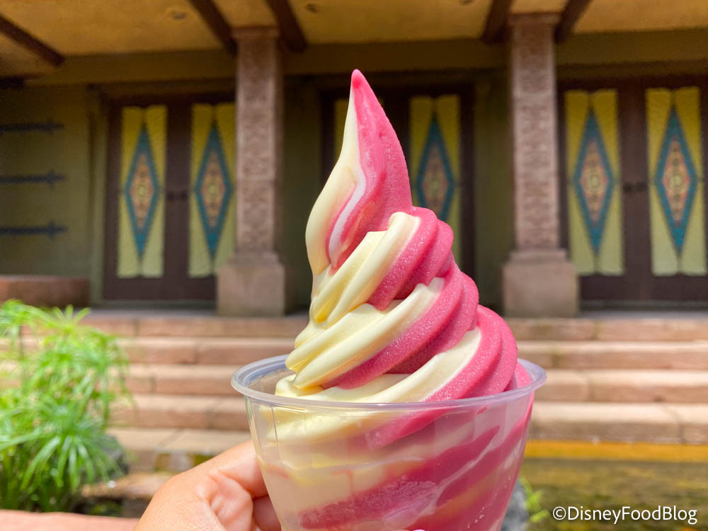 - Raspberry Pineapple Swirl at Aloha Isle (Cast Members can typically do swirls of flavors that are in the same machine, and sometimes flavors in different machines, but that’s not a guarantee!)