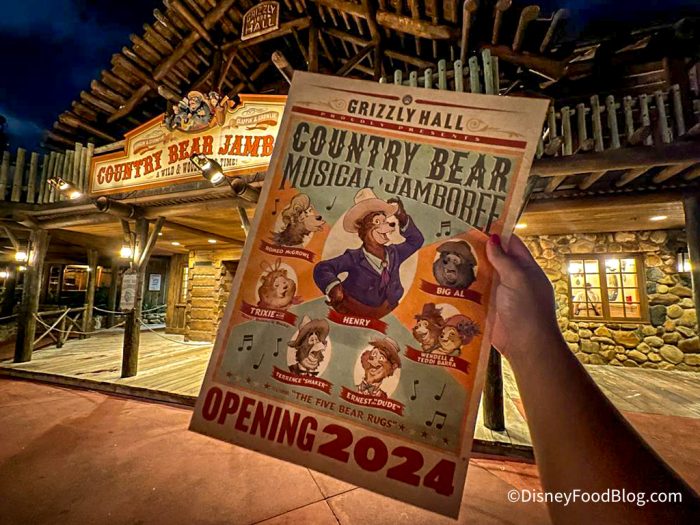 Disclosure: In nearly all circumstances, Disney Food Blog writers and photographers pay full price for their own travel, hotel, food, beverage, and event tickets. We do this because it’s important to us as journalists to ensure not only that we give you unbiased opinions, but also that you can trust us to do so since we’re paying our own way. On rare occasions, when we are invited by a company to attend a preview as media, and when we choose to accept that invitation, we will always make you, our readers, aware of that situation. Today, we were invited by Disney World to attend their media preview of Country Bear Jamboree. Note that when we attend events as media we are 1) Not required to review that event/food on any of our channels, and 2) Not required to review that event/food favorably. You can always count on DFB to give you a 100% unbiased and honest review of any event that we attend, food that we eat, or beverage that we drink. You can see more in our Disclosure Policy. Thank you for reading. — AJ