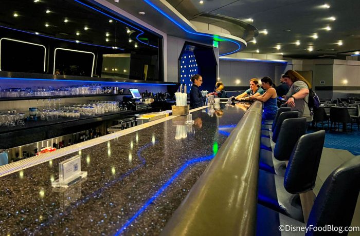 However, this also means that there is no Walk-up Waitlist option on the My Disney Experience app. Instead, you’ll visit the restaurant’s host stand after the restaurant opens at 11:30AM and add your name to the physical walk-up waitlist. (The earlier, the better, since bar seating is first come, first served.)