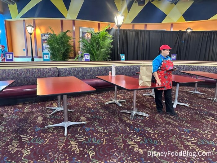 To place an order at the restaurant, you would need to utilize the mobile order feature in the My Disney Experience app. When your order is ready for pick up, it will be brought out to the tables, and a Cast Member will confirm your order as they hand over your bag. This refurbishment was originally anticipated to last through August 1st; however, we’ve confirmed an important update!
