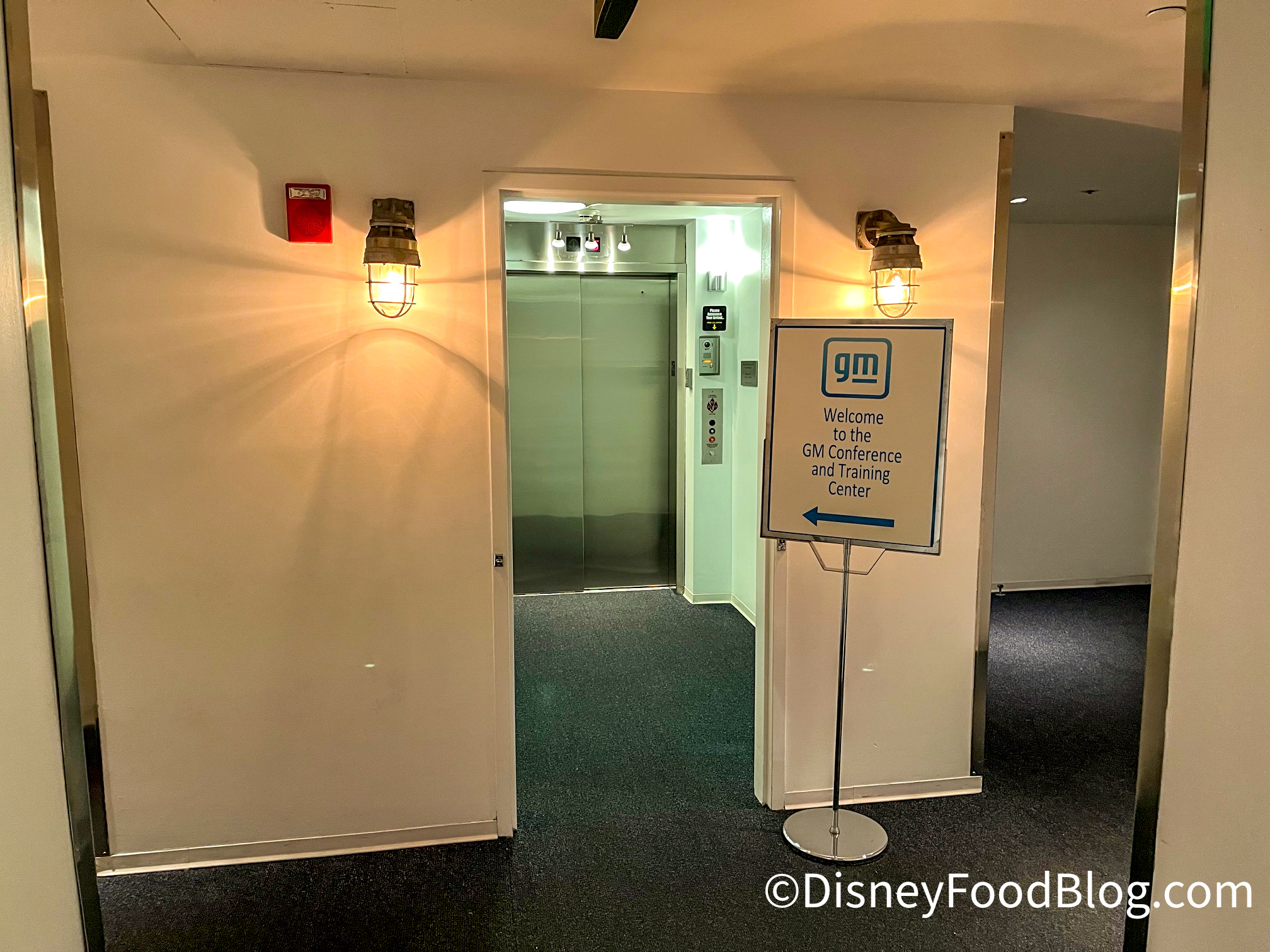 Once you go through the door, you’ll walk to the end of the hallway and press the buzzer near the elevator. Then, a Cast Member will check your GM employee ID — which you MUST have in order to enter. Friends and family are also allowed to tag along with the GM employee to hang out, relax, and grab a free soda.