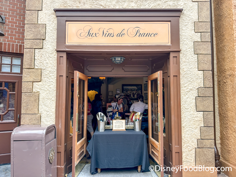 Head into the France Pavilion to find Les Vins De France. Now, this bar isn’t to be confused with Les Vins des Chefs de France — our little green kiosk outside the pavilion that serves some of our favorite drinks like the Grey Goose Slush and the Grand Marnier Slush. (Though, um, you probably wanna pay that one a visit, too.)