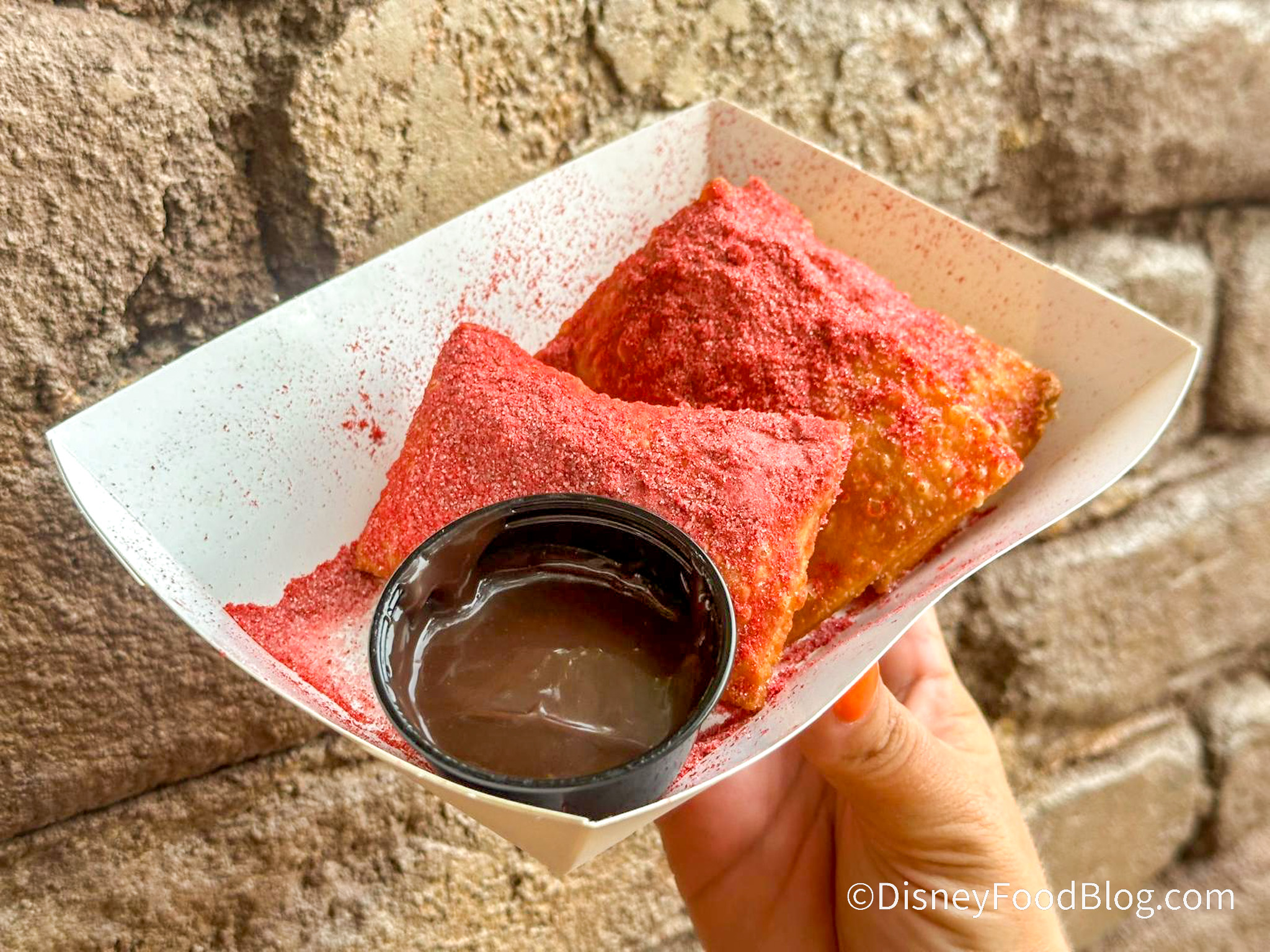 We found the beignets to be delicious, with a spicy kick to them thanks to the flavor dusting. The chocolate sauce had a bit of coffee flavor to it, really nailing the sweet & spicy flavor combo. Don’t forget — you can ONLY get these during Mickey’s Not-So-Scary Halloween Party!