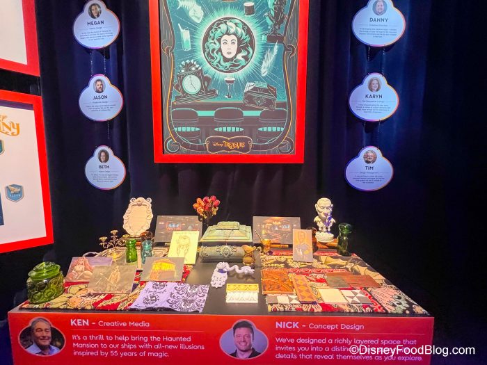 Okay, speaking of the Disney Treasure, we also got a sneak peek at some things that will be part of the Haunted Mansion Parlor on the ship! OOOH.