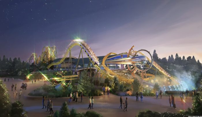 As well, this roller coaster will be special because they decided not to utilize any exterior track lighting. While the area of Celestial Park will have millions and millions of light pixels, the only lighting on Stardust Racers will come from the ride vehicles.