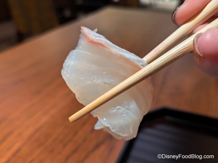 The Japanese seabream is a bit meatier in texture and carries the flavor of the soy sauce with a mild umami flavor.