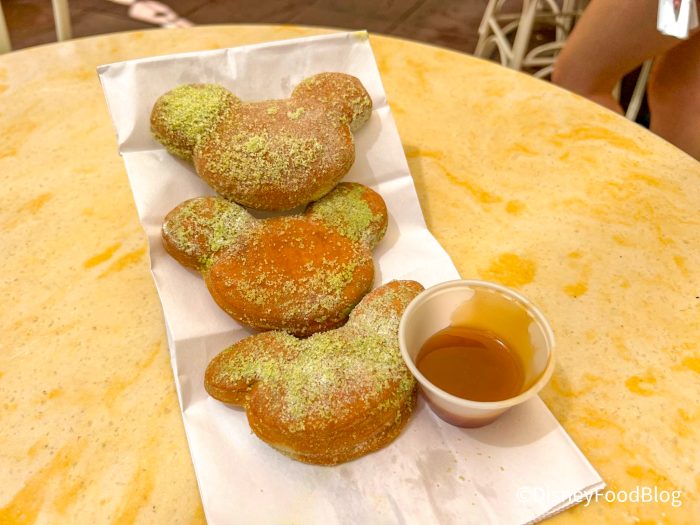 We’re heading to New Orleans Square to the Mint Julep Bar for the new Tangy Apple Mickey-shaped Beignets! These beignets are dusted with tangy apple powdered sugar and are available in packs of three or six. A three-pack will cost you $6.49, while a six-pack is $10.49.