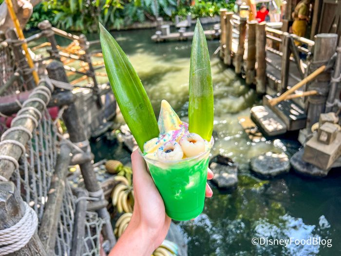 Up next, the Monstropolis Float at The Tropical Hideaway in Adventureland! This new Ube-dusted DOLE Whip Pineapple and Mango has passion fruit coconut juice and lychee fruit, making it look pretty scary. It’s a large treat for $9.29.