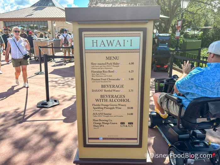 Over at the Hawaii Booth, you’ll find a variety of available items. We have some sweet, we have some savory, we have some brews, we have some fruity cocktails. We have a Hawaiian vacation, right here in the middle of EPCOT.