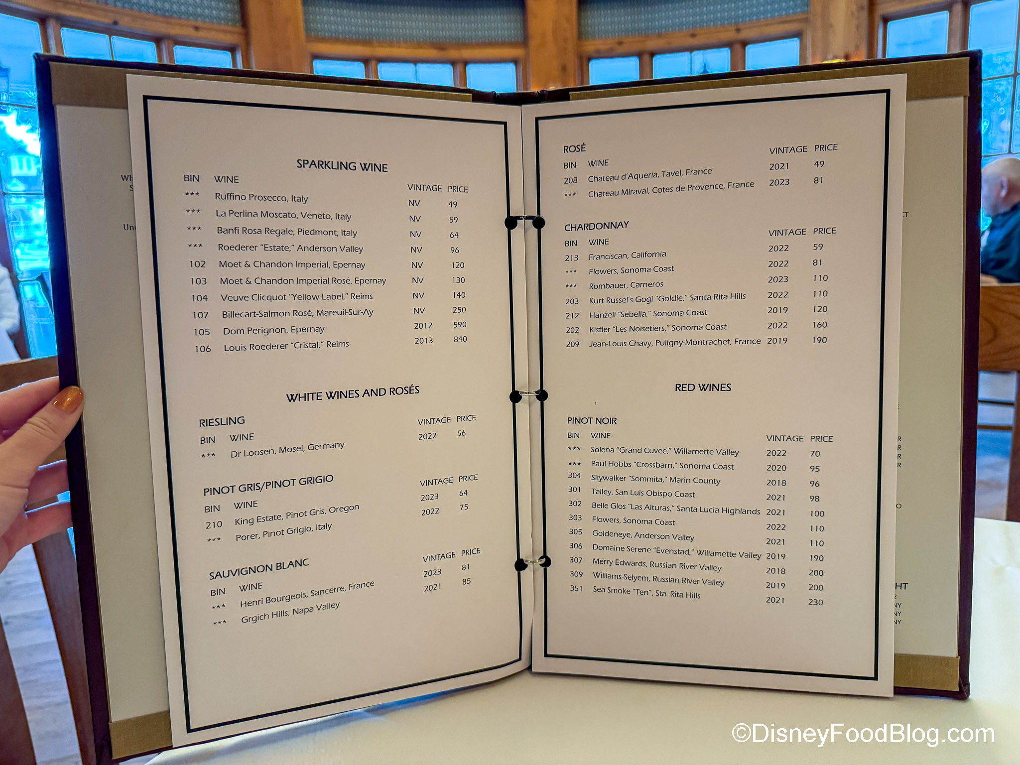 Seating is plentiful, with standard tables and chairs, as well as some booths. Tables are set up with cloth napkins and utensils. Yep, we’re eating a lot fancier here than we do when we’re grabbing something from the food court at Disney’s All-Star Resorts. So yes, it’s a little fancy, but at the same time, it doesn’t feel bougie. It’s a cozy, kinda upscale vibe.
