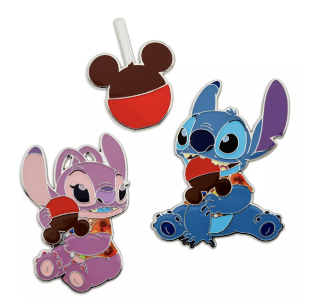 This limited edition pin set features Stitch and Angel munching on their candy apples, plus a pin of an apple itself.