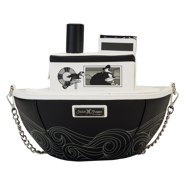 Steamboat Willie is so special to Disney fans as it was Mickey Mouse’s debut. This Stitch Shoppe Exclusive Loungefly bag pays tribute to the animated short, with Mickey steering the iconic steamboat. Minnie is also along for the ride and the details of the waves are shown along the bottom of the bag in funky line work.