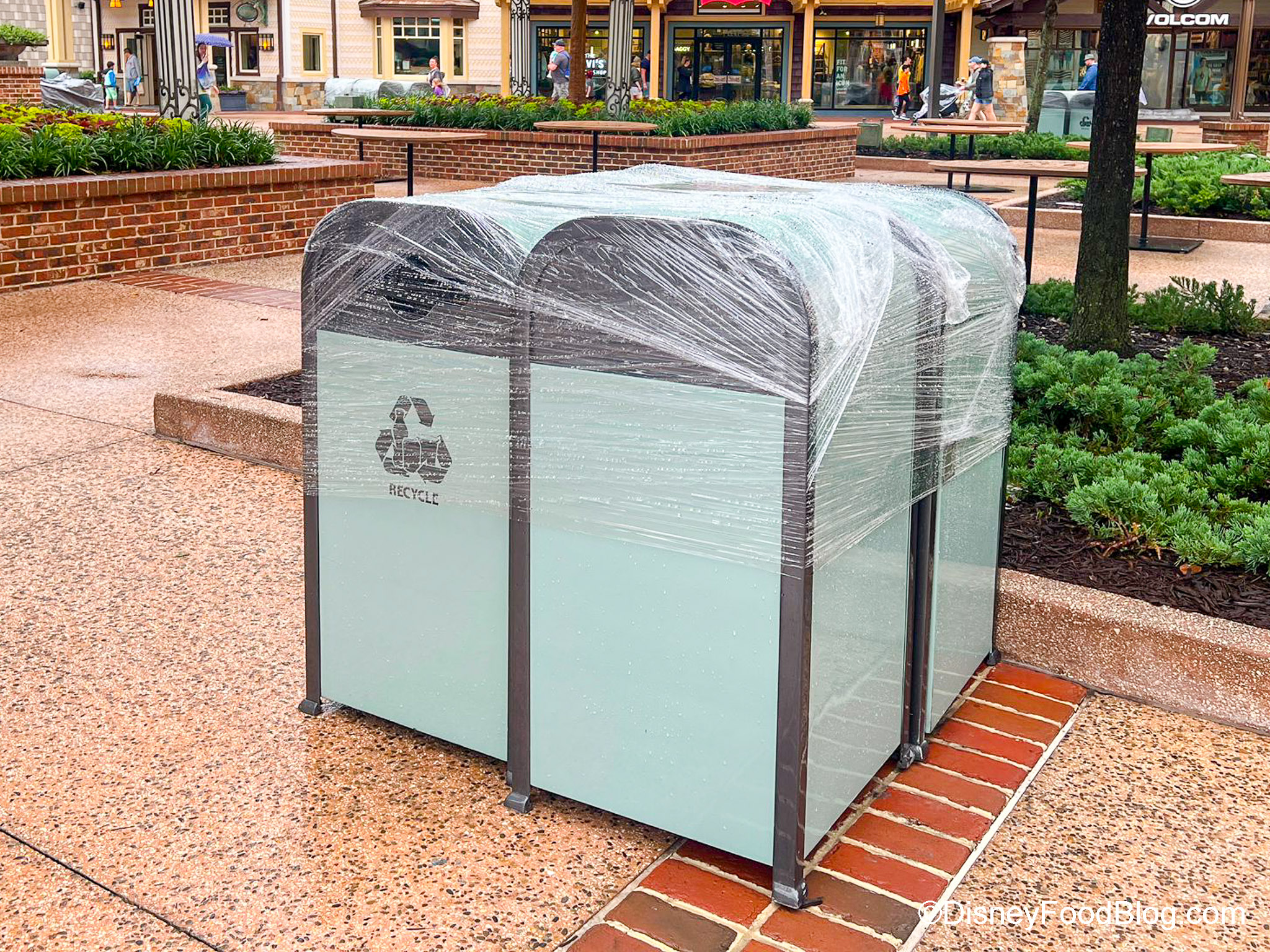 Hurricane prep has begun in Disney Springs. Stores have placed sandbags outside, and trash cans have been wrapped together to help secure them. 🌀 pic.twitter.com/dzo9Sb638T