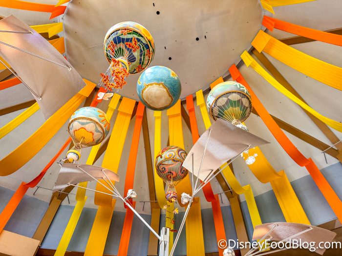 Sunshine Seasons is located in The Land Pavilion at EPCOT, and you can see the theming as soon as you walk in! The four hot air balloons that hang from the ceiling are themed to the four seasons of the year.