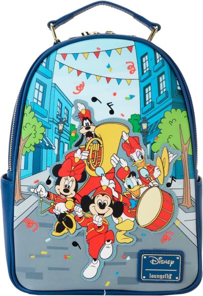 Or if you want to sport your love of Mickey Mouse, you can get this Mickey Mouse Marching Band Loungefly Backpack. This bag is full of fun and features Mickey, Minnie, Donald, Daisy, and Goofy marching down the street playing their instruments. You may even find a surprise in the form of Pluto on the back!
