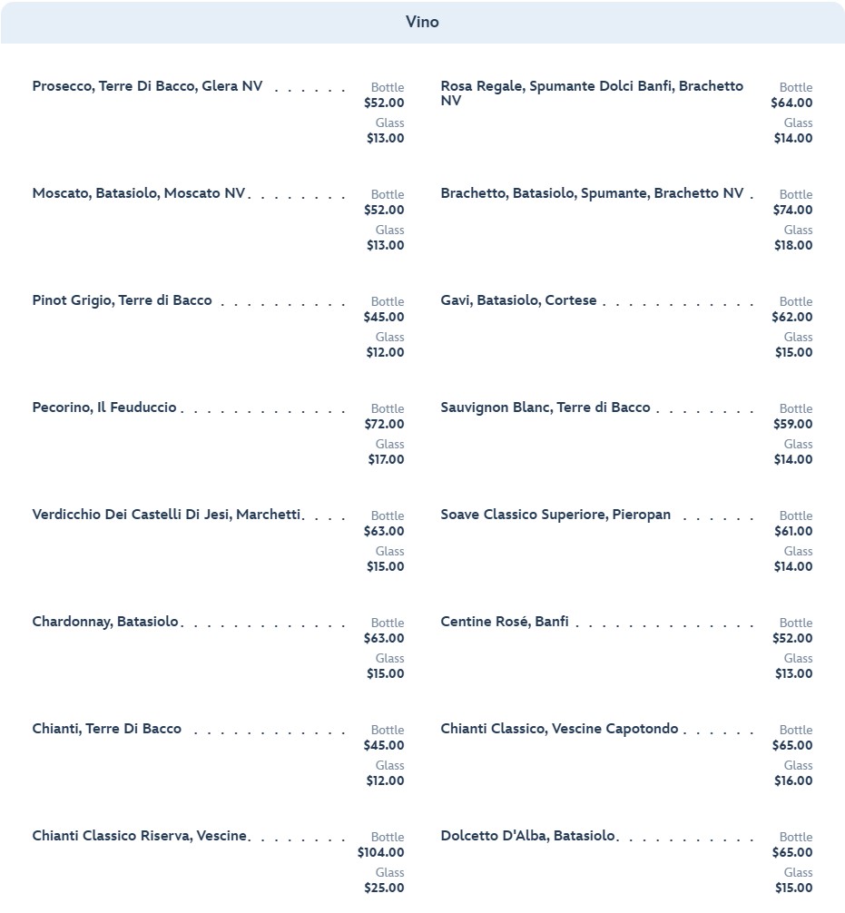 You will also find that the menu includes Limoncello, Sambuca, Amari, and Liquori.