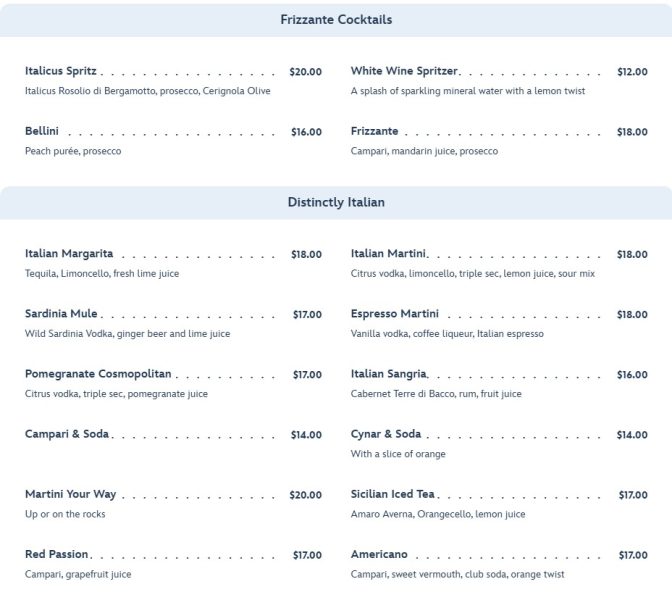 You can also order cocktails including cocktails that are “distinctly Italian.”