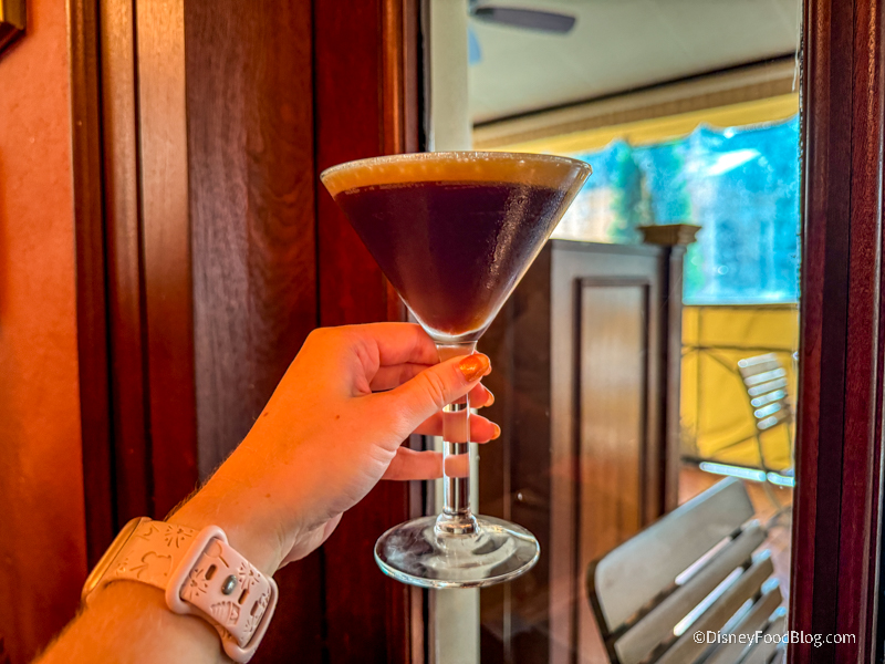 We thought the Espresso Martini was smooth and sweet. Overall, it is what you would expect from an Espresso Martini, but it wasn’t anything special. If you are a fan of this drink, you will feel satisfied with this one, but it isn’t the best Espresso Martini we have had in Disney World.