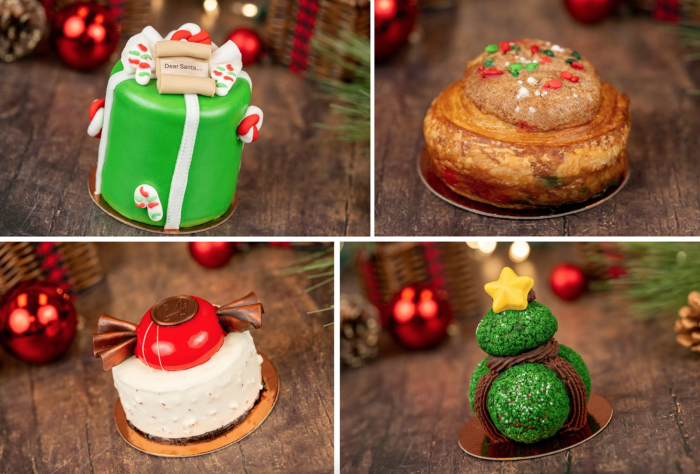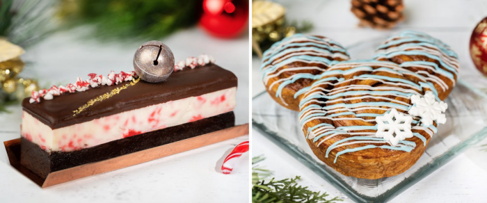 - Holiday Mickey Cupcake: Vanilla cupcake, white chocolate mousse, colored buttercream, holiday sprinkles, and white chocolate candy cane (New)