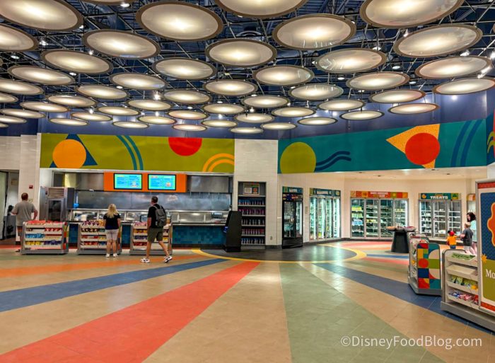 Since July 29th, Everything Pop has been getting some work done. The refurbishment was supposed to end on September 29th. However, Disney updated the refurbishment timeline to extend it to November. This means the food court should have been back to full and normal operation, but that’s not the case. However, we did stop by and noticed a few updates — it’s looking really good so far! Guests can grab food at several counters and on mobile order, as well as use the limited seating while work is being done.