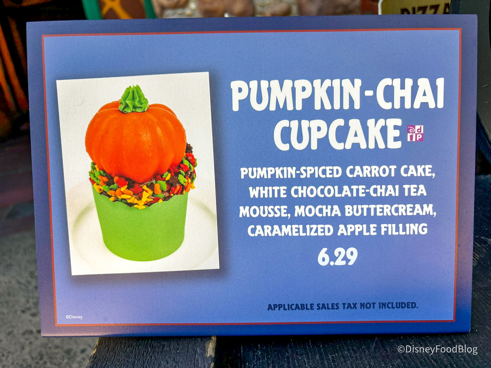 Disney released the Pumpkin-Chai Cupcake at both Pizzafari and Restaurantosaurus for $6.29. We’ve seen similar cupcakes around the parks in past years, but this large dessert is worth stopping by for. It is made with pumpkin-spiced carrot cake, white chocolate-chai tea mousse, mocha buttercream, and caramelized apple filling — and it’s AMAZING.