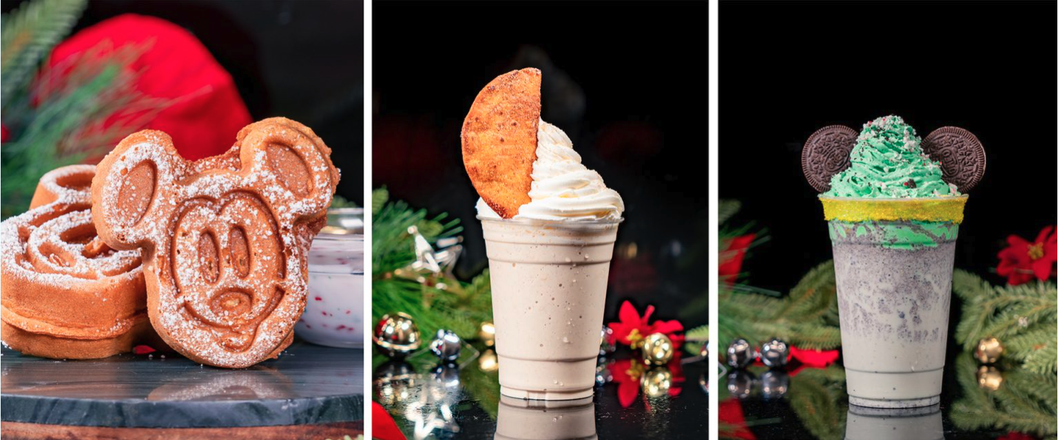 - Christmas Mickey-Shaped Cookie: Shortbread cookie dipped in white chocolate with holiday sprinkles and chocolate Mickey decoration (New) (Available Nov. 15 through Jan. 7)