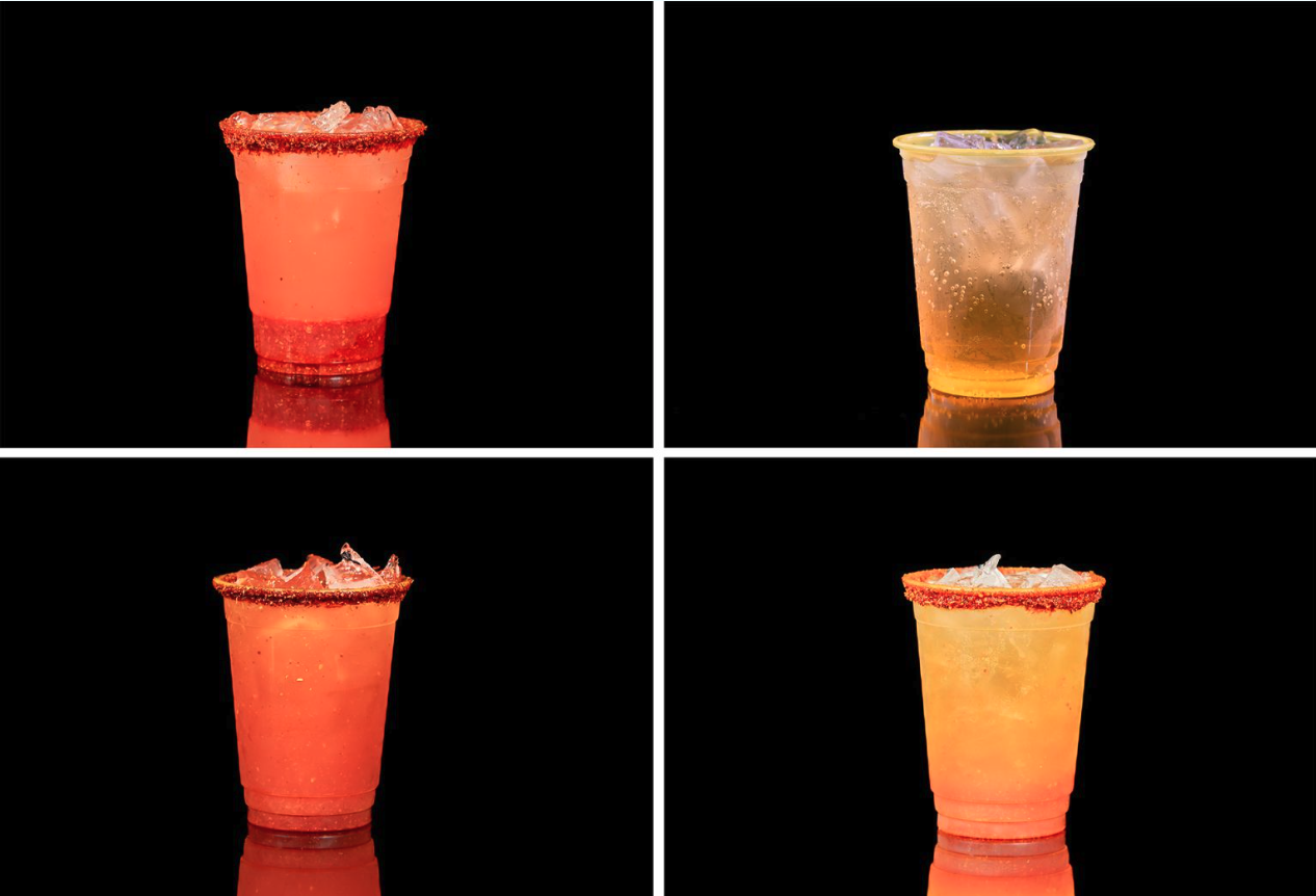 - Cancun Vacación: Tequila blanco, campari, pineapple juice, lime juice, orgeat, and passion fruit
