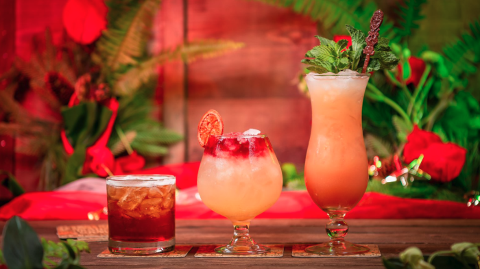 - Christmas Colada: Coconut rum, simple syrup, mint, lime juice, pina colada mix, garnished with cranberry, and a candy cane rim