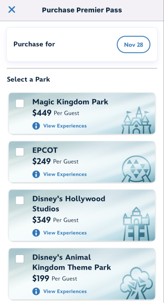 Hereβs a look at the prices for Disneyβs new luxury skip-the-line service, Lightning Lane Premier Pass, on November 28th, 2024. To sum this option up in a few words, itβs basically a top-dollar, simplified way to avoid the standby line at each ride. The prices on Thanksgiving day are record-breaking β this is the most weβve seen Disney charge for a Premier Pass at each park.