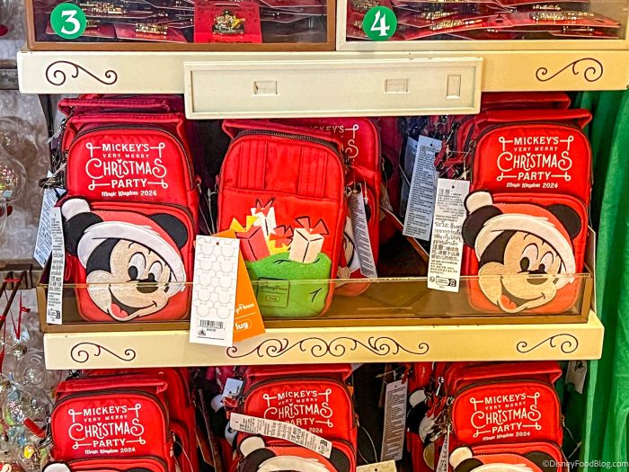 Lug bags have been incredibly popular this year, and now there’s a Christmas Party exclusive Lug Crossbody Bag! It has Santa Mickey and the party logo on the front, with Christmas presents on the back. It comes with an adjustable strap.