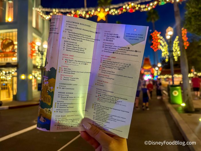 We now have a first look at the Jollywood Nights map and we are so excited by all the exciting experiences throughout Disney’s Hollywood Studios! This is more of a booklet than a traditional map…and we love it!
